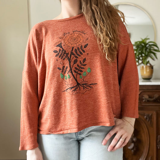 October Birth Flower | Marigold | Gray Ribbed Long Sleeve | 3X