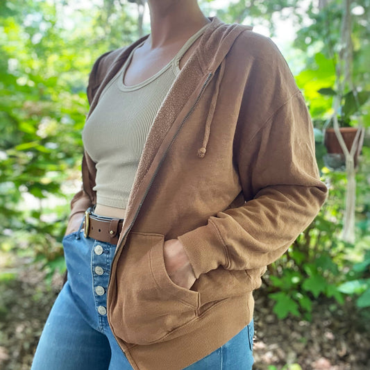 Stronger Together | June Birth Flowers | Brown Zip-Up Hoodie | XS