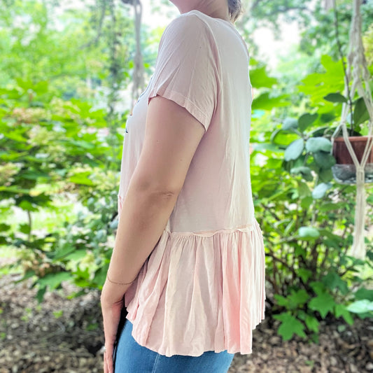 Stronger Together | June Birth Flower | Pink Flowy Top | Large
