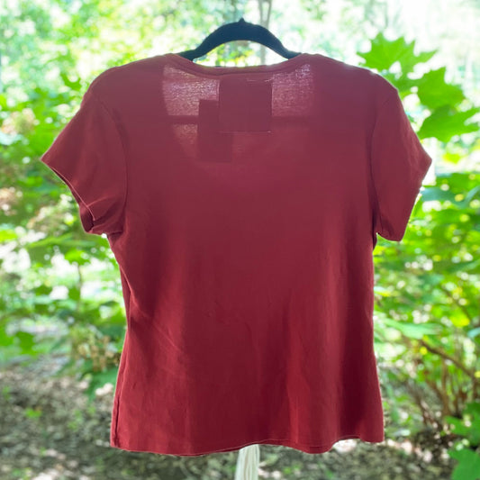 Stronger Together | June Birth Flower | Red V-Neck Shirt | Medium
