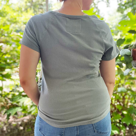 Stronger Together | June Birth Flower | Blue Ribbed Short Sleeve Shirt | XL