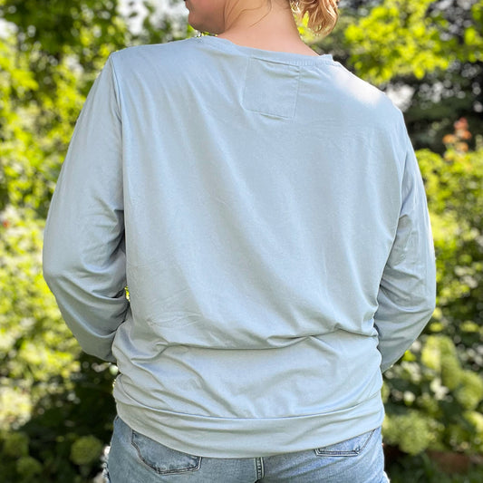 September Birth Flower | Morning Glory | Dusty Green 3/4 Sleeve Shirt | Large