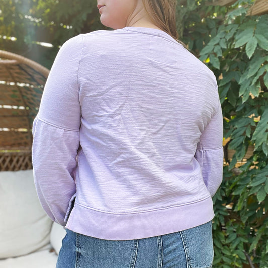 One Day at a Time | July Birth Flower | Purple Long Sleeve Pullover | Medium