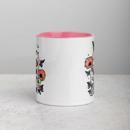 Ceramic Mug with Accent Color | June Birth Flower | Rose & Honeysuckle