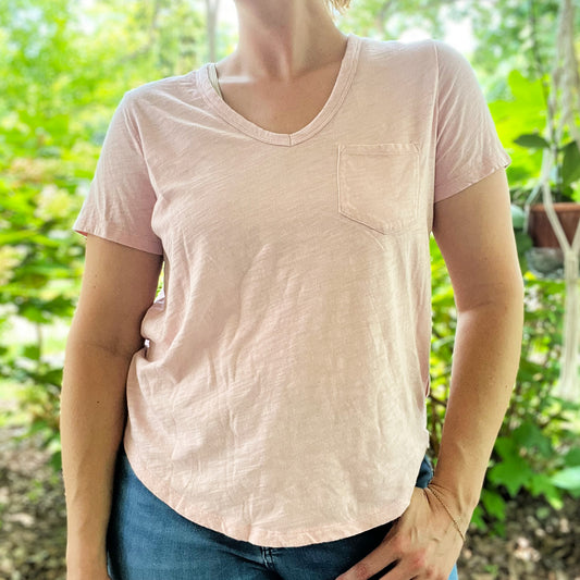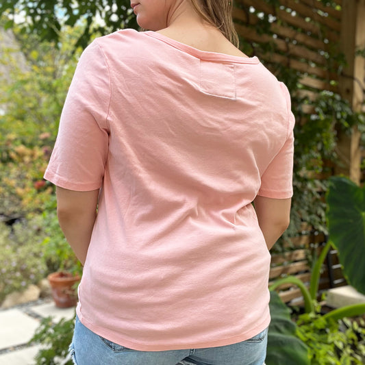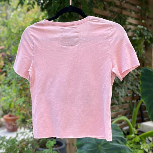 Stronger Together | June Birth Flower | Pink V-Neck Shirt | Small
