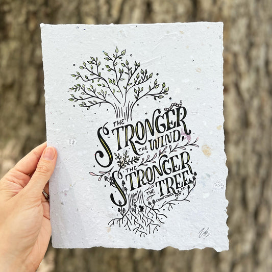 Each handmade paper poster starts with a pile of junk mail and ends as a one-of-a-kind piece of art. I hand-tear, soak, and re-pulp discarded paper to form each sheet, giving it new life with unique textures, flecks, and character depending on the mail used. No two are ever the same. Each sheet is screenprinted by hand with my original illustrations and sometimes hand-painted with watercolor. These posters are meant to be a little wild, imperfect, and full of personality—just like the process that made them.