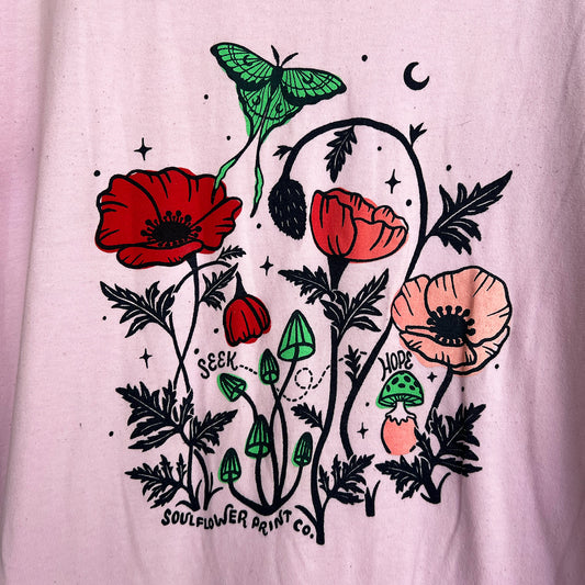 Seek Hope | August Birth Flower | Pink Scoop Neck Tee | XL