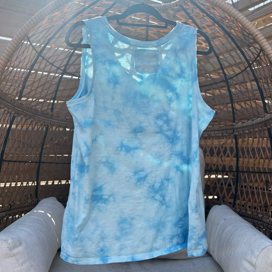 Stay Feral | Opossum | Blue Tiedye Tank Top | Medium