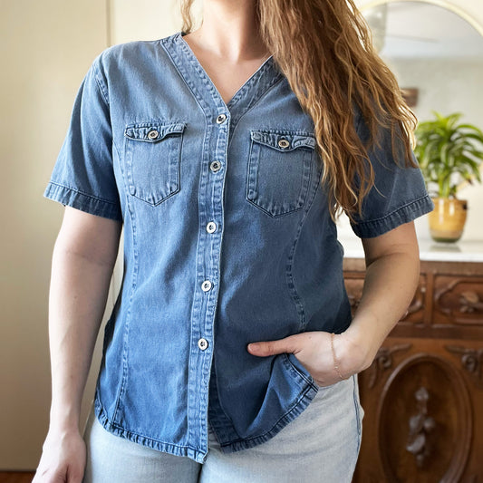 Shop Local | Denim Short Sleeve Button Up | Medium