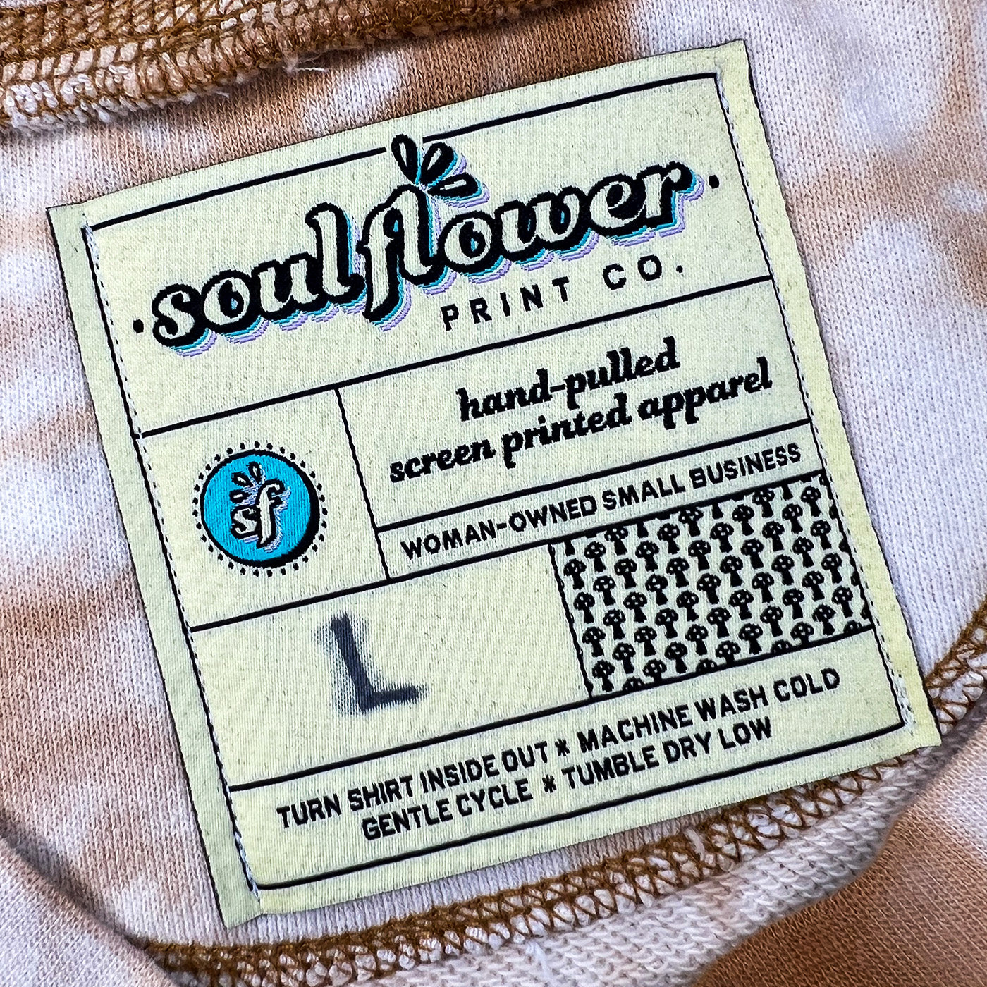Every piece of Soulflower apparel starts as a thrifted find—lovingly rescued, washed, and transformed into wearable art. I screenprint each design by hand in my home studio using eco-friendly, water-based inks. It’s slower, more thoughtful, and better for the planet. Choosing upcycled clothing means you're giving new life to something old while avoiding the waste and harm of fast fashion.