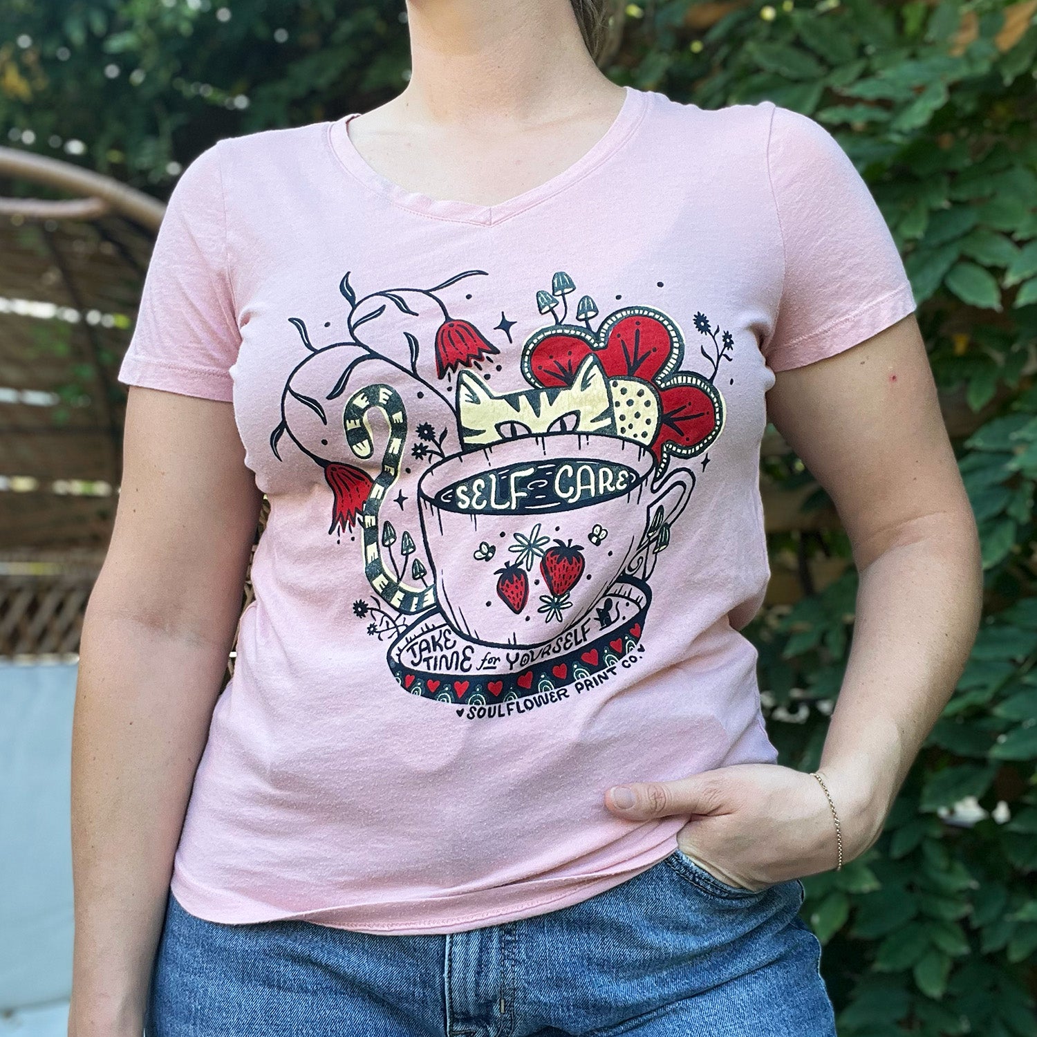 I bought a pink self care cat hoodie and it is so soft, comfy and cute! I did an exchange to size up and Jess was super helpful and patient as I was traveling. She also generously donated several Soulflower items to a local cat rescue art fund raiser. She’s not just a great artist but a kind person too!