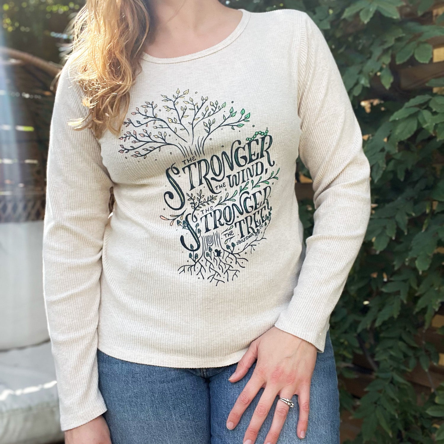 Introducing the Strong Tree design on a super cozy fluffy collared heather cream long sleeve cropped shirt with front kangaroo pocket! With gradient pink to yellow to green leaves, charming mushrooms 🍄, a little forest mouse nestled at the base, and a caterpillar crawling, this design is all about strength, growth, and staying grounded through life's challenges. The inspiring phrase "The Stronger the Wind, the Stronger the Tree" reminds you of your resilience, no matter what storms come your way. 🌿