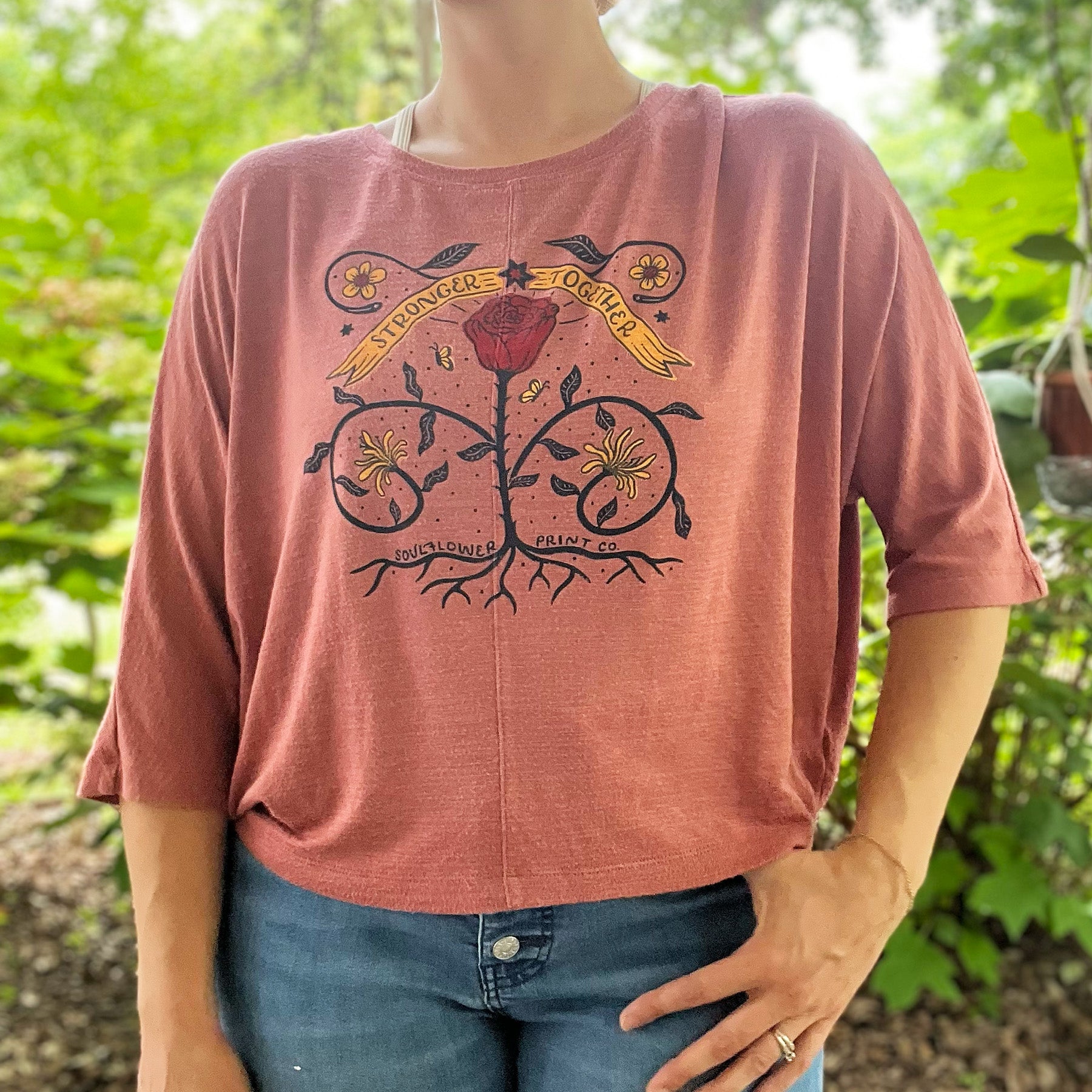 Stronger Together | June Birth Flower | Dark Pink Dolman Sleeve Shirt | Large