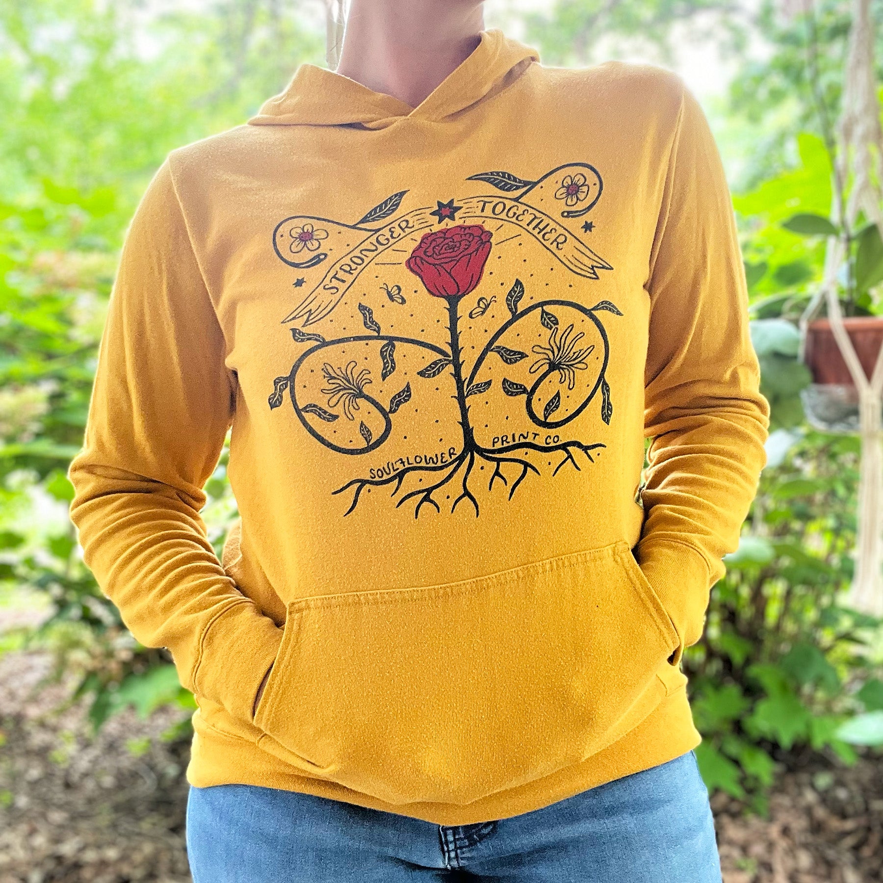Stronger Together | June Birth Flower | Mustard Hoodie | Large