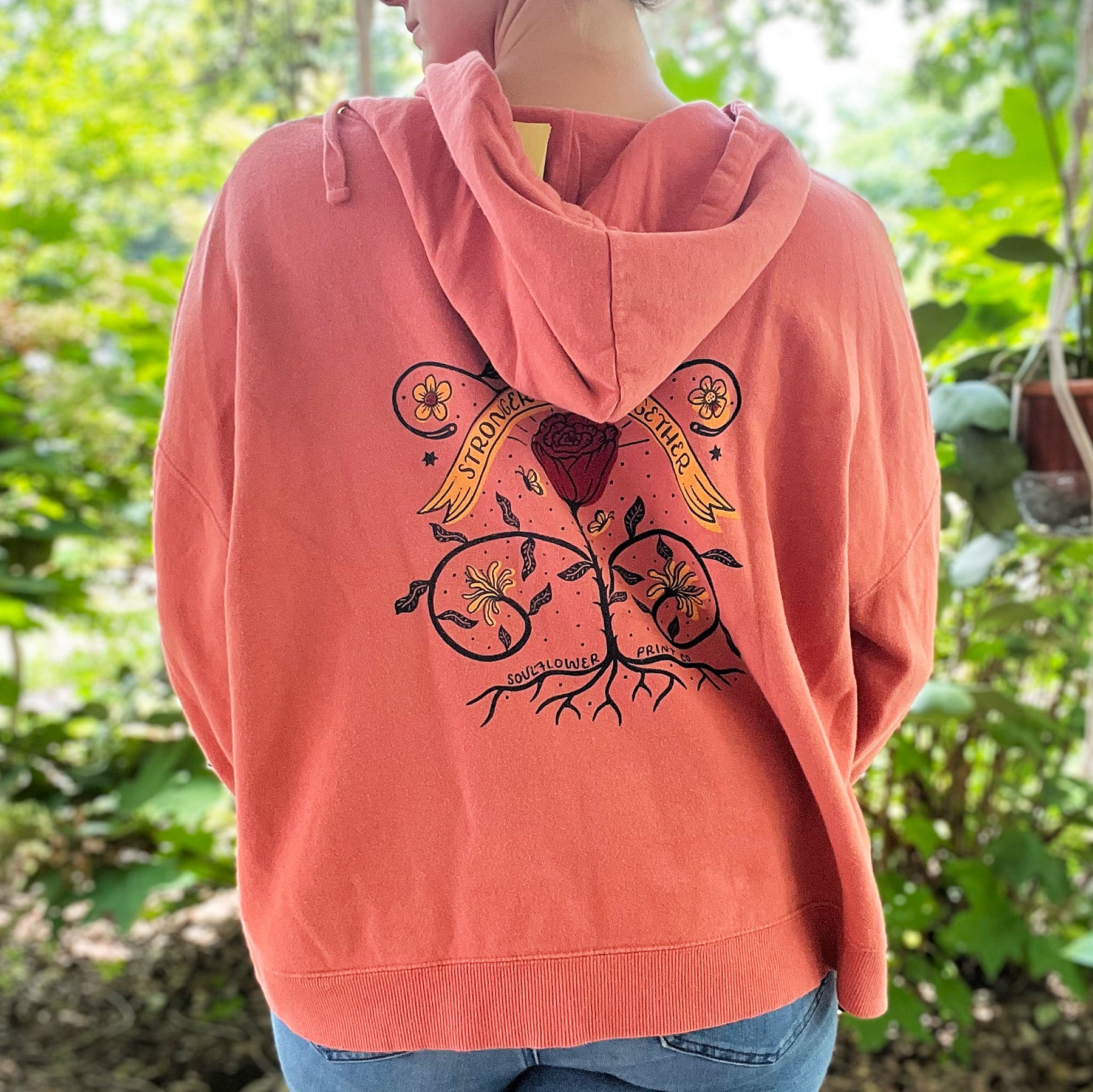 Stronger Together | June Birth Flower | Pink 3/4 Zip Hoodie | XL